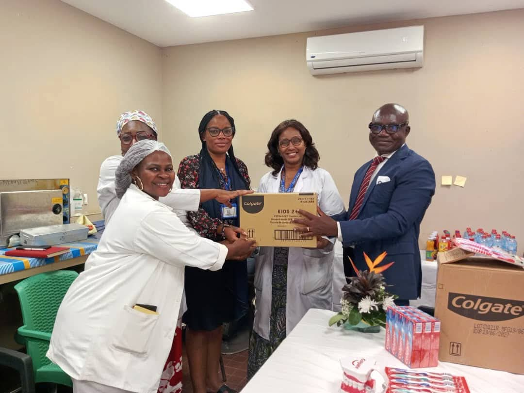À l’origine de cette mobilisation, le Dr Salomon ZING, président national de l’ANCD, n’a pas fait le déplacement les mains vides. C’est avec une fierté visible qu’il détaille le contenu du don : « Vous allez voir qu’on a donné 1 152 brosses à dents pour les enfants, quelques brosses pour les adultes, mais la majorité, vraiment, c’est pour la pédiatrie. Donc, on a vraiment éclaté pour la pédiatrie. » Son regard s’illumine lorsqu’il évoque la synergie possible entre les services.