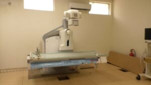 Le service de radiologie du CHU de Yaoundé dispose d’un plateau technique moderne et diversifié, lui permettant de réaliser un large éventail d’examens d’imagerie. Les équipements incluent une salle d’IRM (imagerie par résonance magnétique) avec sa propre salle d’attente, une salle de scanner, deux salles de radiographie conventionnelle dont une avec table télécommandée ainsi que deux salles d’échographie et une salle de panoramique dentaire. En outre, un appareil portatif permet d’effectuer des examens directement au chevet des malades, améliorant la flexibilité et la qualité des soins prodigués aux patients immobilisés. Cette panoplie d’appareils est essentielle pour gérer le volume d’activité important du service.