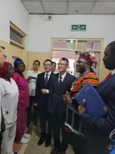 Accueilli chaleureusement par Mofor Robert, Directeur Administratif et Financier représentant le Directeur Général, le diplomate chinois a d’abord pu constater l’importance du travail accompli par les équipes médicales bilatérales. En effet, cette visite s’inscrit dans le cadre du suivi régulier des projets de coopération entre les deux nations.