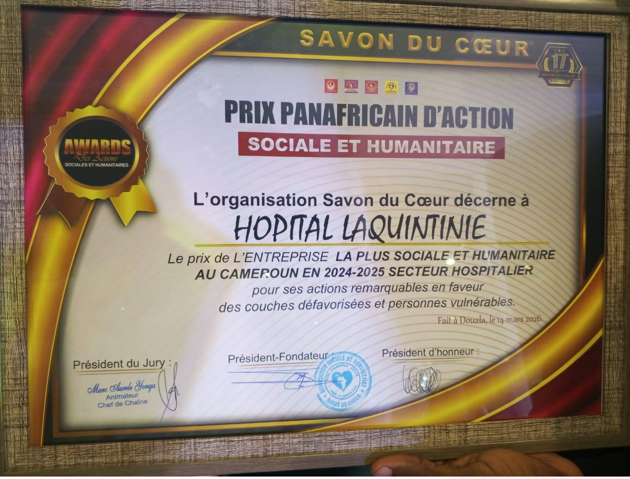 Un nouveau trophée à son palmarès et pas des moindres. Il s’agit du prix de l’Action Sociale et Humanitaire qu’a reçu l’hôpital Laquintinie de Douala, la semaine dernière. C’était pendant la cérémonie de l’Award Panafricain 2025. Un événement parrainé par le Gouverneur de la région du Littoral.