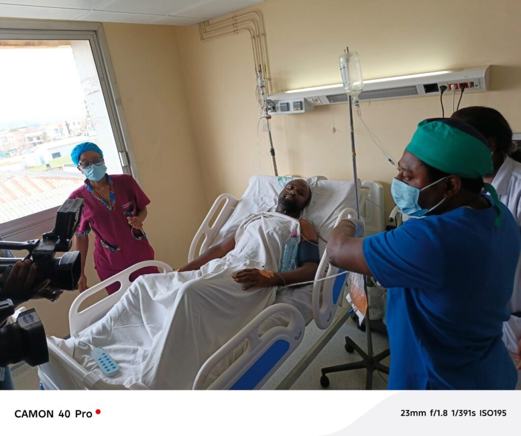 Cette intervention ne relevait pas de la routine médicale, mais d’un véritable sauvetage d’urgence. Le Dr Sébastien Mba, chef de service Anesthésie-réanimation, souligne la gravité de la situation initiale : « Je ne suis pas sûr que ce patient passerait cette semaine si nous ne faisions pas quelque chose parce qu’il était sévèrement anémié… il y avait un élément dans le sang qui était extrêmement élevé et il était sur le point d’en faire un arrêt cardiaque. »