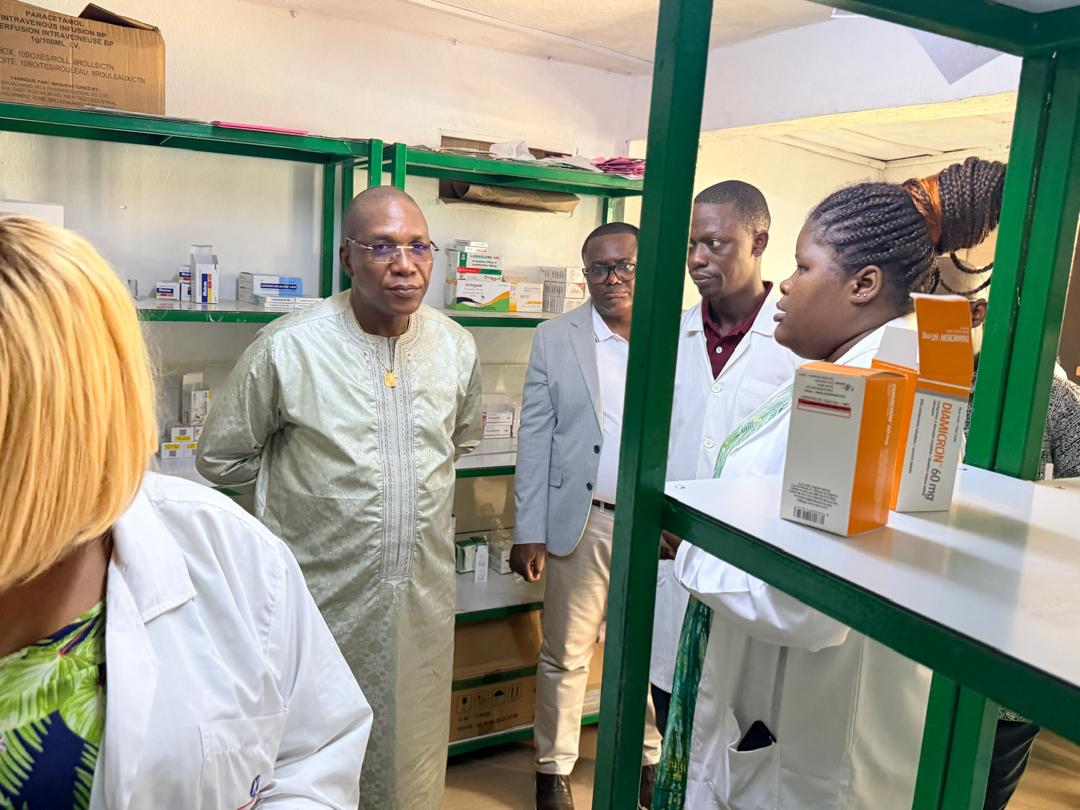 À la polyclinique Merveilles des Conquêtes, une institution privée, la visite s’est concentrée sur la vérification de ses capacités opérationnelles (28 lits, services de gynécologie, pharmacie) et de la régularité de ses activités, comme ses cinq accouchements mensuels moyens.
