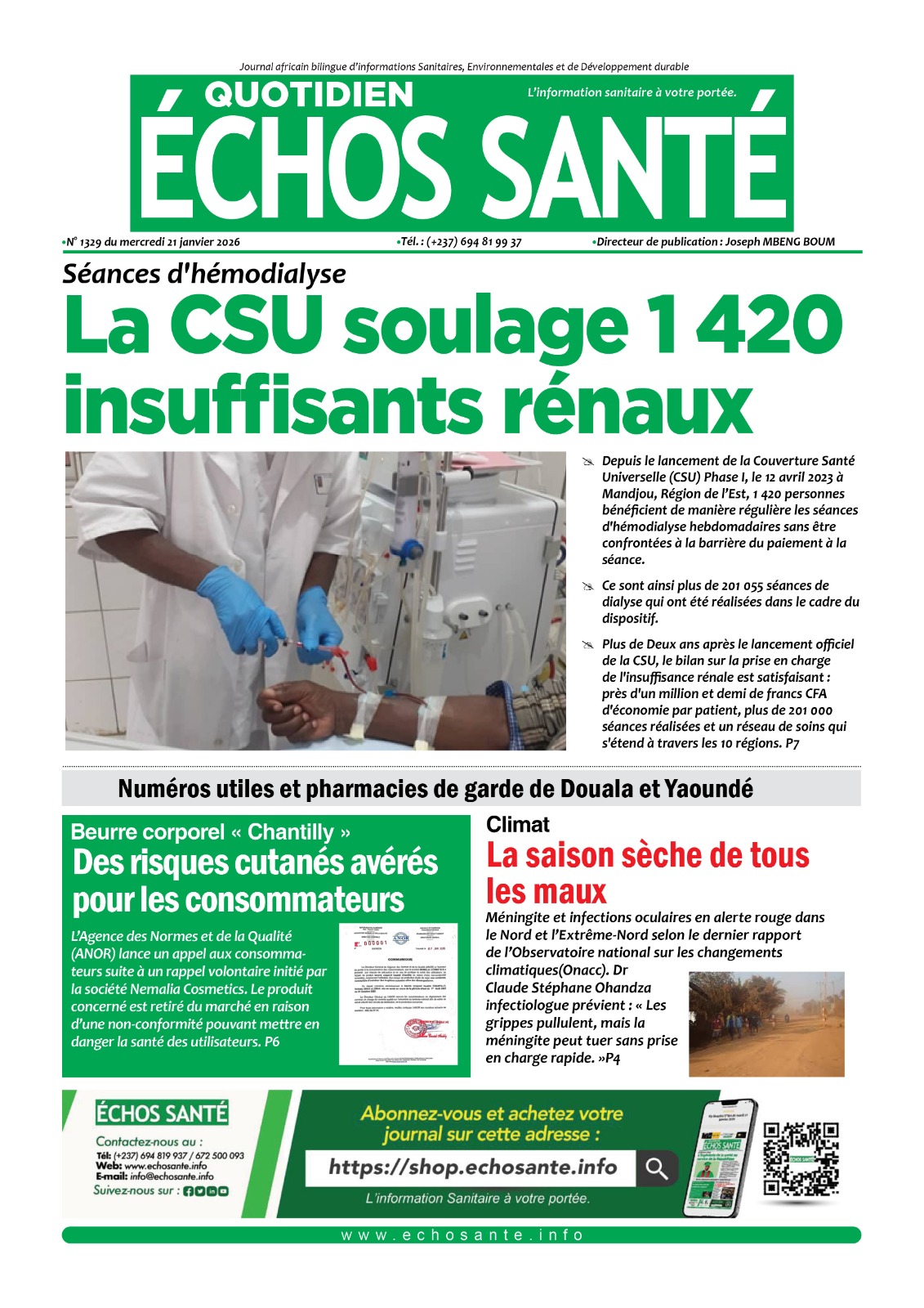 Echos santé N°1329 du mercredi 21 janvier 2026