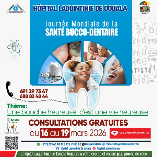 À travers cette définition, il est facilement perçu le rôle joué par la santé bucco-dentaire dans le bien-être général et la qualité de vie. Pour emmener les gens à conserver une bonne hygiène dentaire, l’hôpital Laquintinie de Douala (HLD) qui organise une série d‘activités depuis le début de l’année en cours a inséré également dans son agenda une campagne de consultation gratuite sur la santé bucco-dentaire.